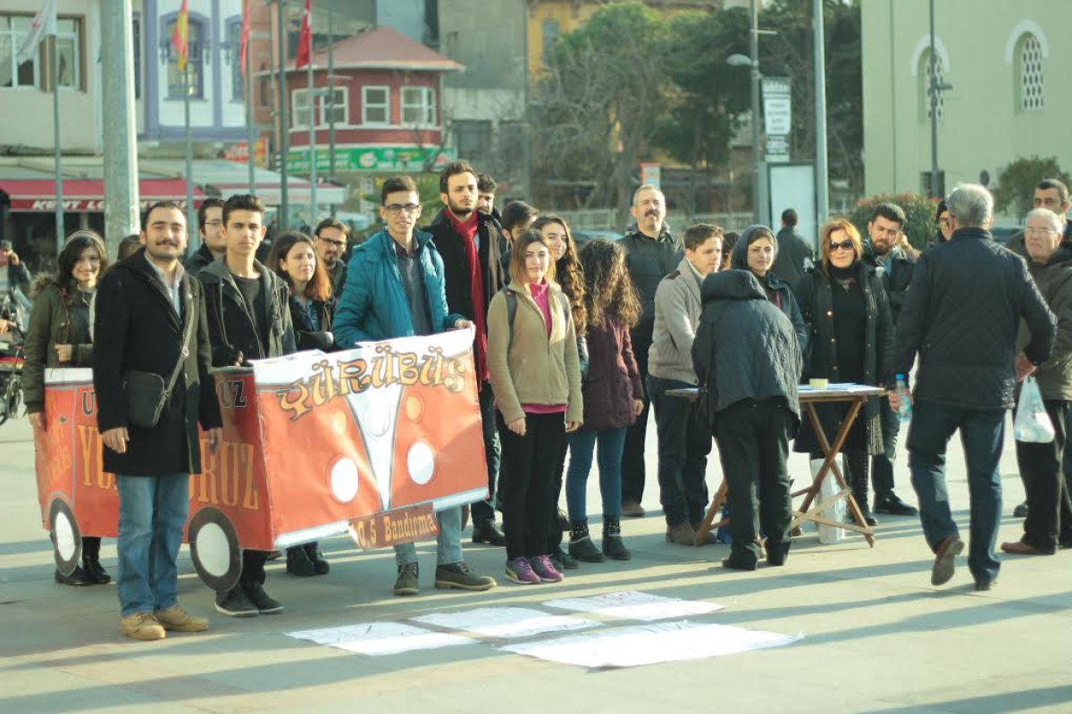 Bandırma 17 Eylül Üniversitesi gençleri yaratıcılığını gösterdi. ”Madem ulaşıma zam yapılıyor bizlerde kendi aracımızı yaparız” diyen gençler YÜRÜBÜS adında dikkat çeken bir araçla Bandırma caddelerini dolaşıp meydanda kalabalıkla buluştu.