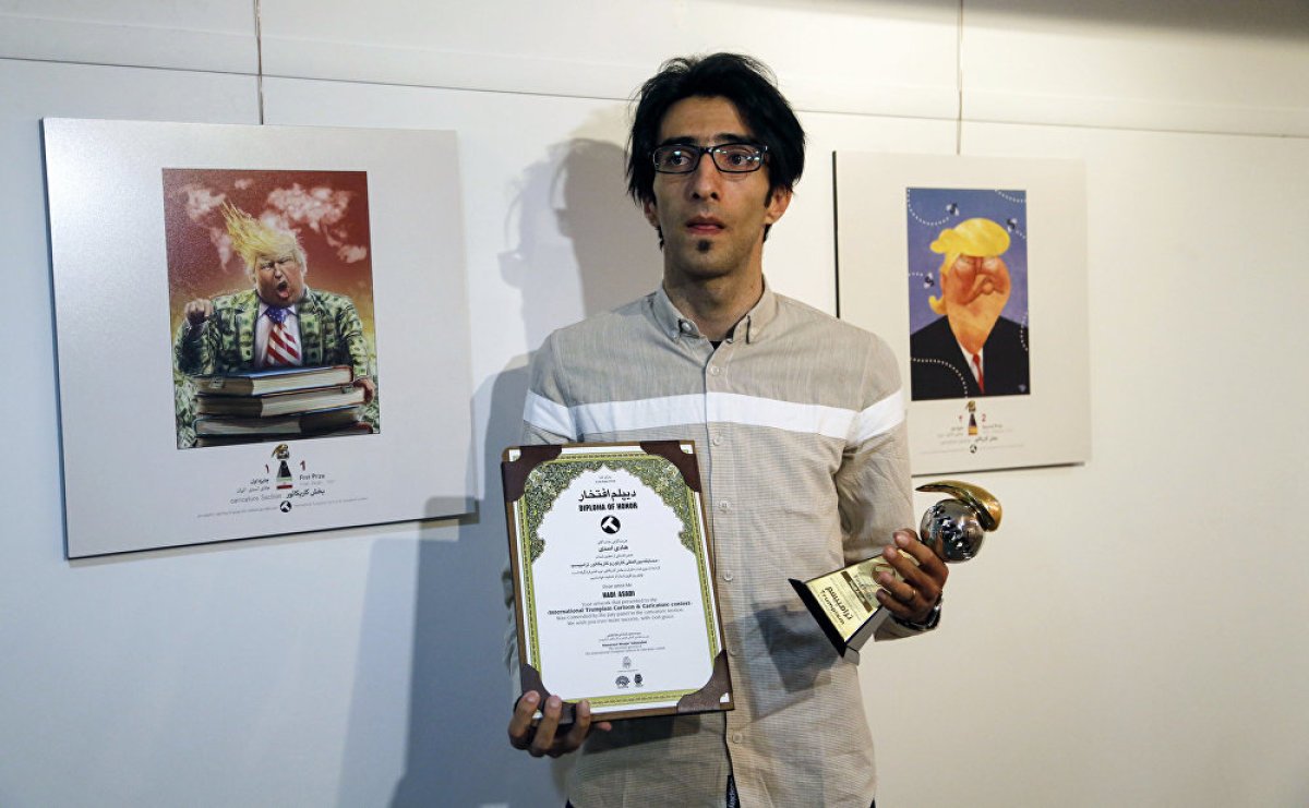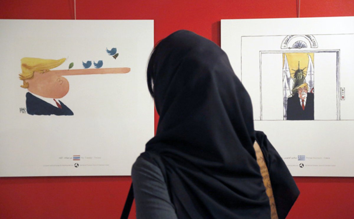 ABD Başkanı Donald Trump’ın hicvedildiği çalışmaların yer aldığı sergi, Tahran’daki Sure Sanat ve Kültür Merkezi’nde açıldı. Uluslararası karikatür yarışmasına 75 ülkeden bin 600 çalışma katıldı. Türkiye’den de 30 eserin yer aldığı yarışmada birinciliği İran’dan Hadi Asadi, 1500 dolar para ödülünün de sahibi oldu.