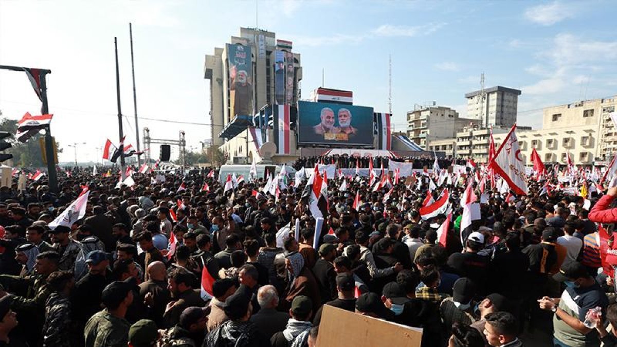 İran Devrim Muhafızları Kudüs Gücü Komutanı Tümgeneral Kasım Süleymani ve Irak Haşdi Şabi Başkan Yardımcısı Ebu Mehdi el-Mühendis’in 3 Ocak 2020’de Bağdat Havalimanı yakınlarında, ABD Başkanı Donald Trump’ın talimatıyla bir İHA saldırı ile öldürülmesinin 1. yıldönümünde Irak’ta gösteriler düzenlendi. Binlerce kişi önceki geceden ellerinde Süleymani ve Mühendis’in fotoğraflarıyla Bağdat Havalimanı yakınlarında toplanmaya başladı. Konvoylar oluşturuldu. ABD karşıtı sloganlar atıldı. Bağdat şehir merkezinde de gece 1’den itibaren hazırlıklar başladı, Haşdi Şabi güçleri halkı anma için Tahrir Meydanı’nda toplanmaya çağırdı. Tahrir Meydanı’nda toplanan yüzbinlerce gösterici Süleymani ve Mühendis’i ellerinde pankartlar ve mumlarla anarken, ABD karşıtı sloganlar attı. ‘Katil ABD Irak’tan defol’ gösteride en çok atılan sloganlardan oldu. Irak’ın Basra, Dikar, Muthana, Meysan kentlerinde de benzer anma törenleri yapıldı. Asaib Ehlil Hak örgütü lideri Kays Hazali de, Süleymani suikastının yıl dönümü dolayısıyla gösteri çağrısında bulunmuştu. Kudüs Gücü Komutanı Tümgeneral Kasım Süleymani, 3 Ocak 2020’de Bağdat’ı ziyareti sırasında ABD’nin düzenlediği terör saldırısı sonucu hayatını kaybetmişti. Saldırıda Süleymani, Haşdi Şabi Başkan Yardımcısı Ebu Mehdi el-Mühendis, İranlı subaylar ve Iraklı korumalarla birlikte 10 kişi ölmüştü.