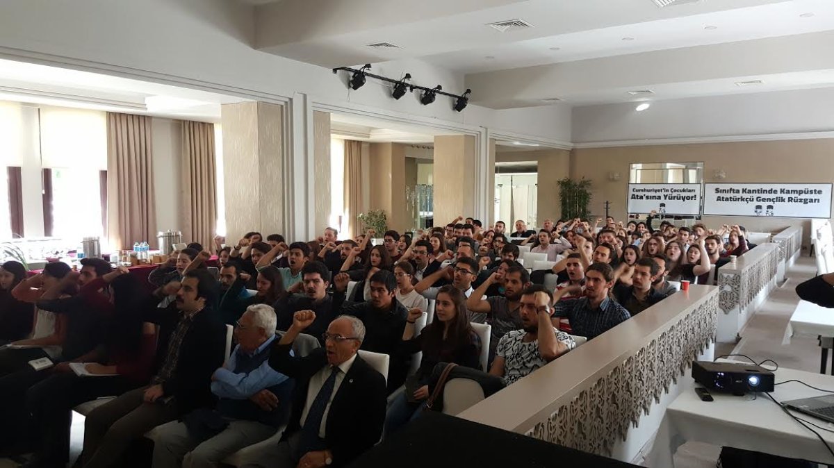 Açıklama sırasında sık sık ‘Atatürk Gençliği Görev Başında’, ‘Cumhuriyet Devrimi Kazanacak’, ‘Kahrolsun Amerikan Emperyalizmi’ sloganları atıldı.