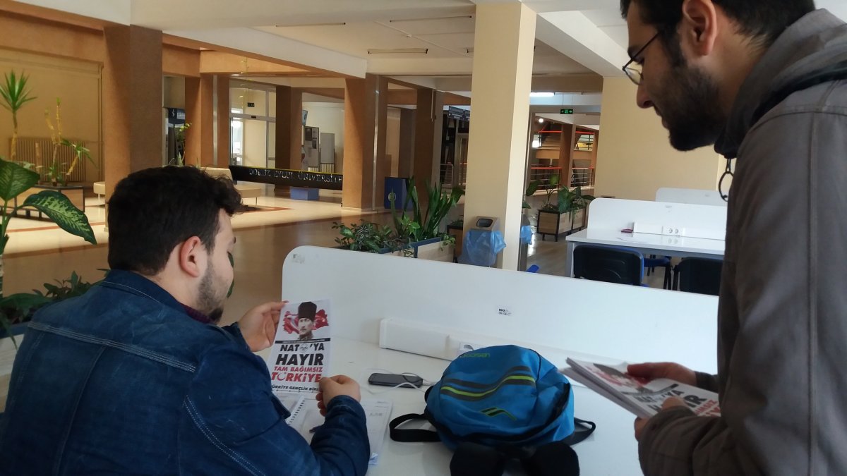 Dokuz Eylül Üniversitesi Birim Örgütümüz, ilan ettiğimiz NATO haftası kapsamında çalışmaları sürdürüyor. Fakültelerde bildiri dağıtan Dokuz Eylül Birim Örgütümüz, öğrencilere neden NATO'nun müttefik olamayacağını ve yıllardır süren NATO'nun Türkiye'yi bölme girişimlerini anlattı.
