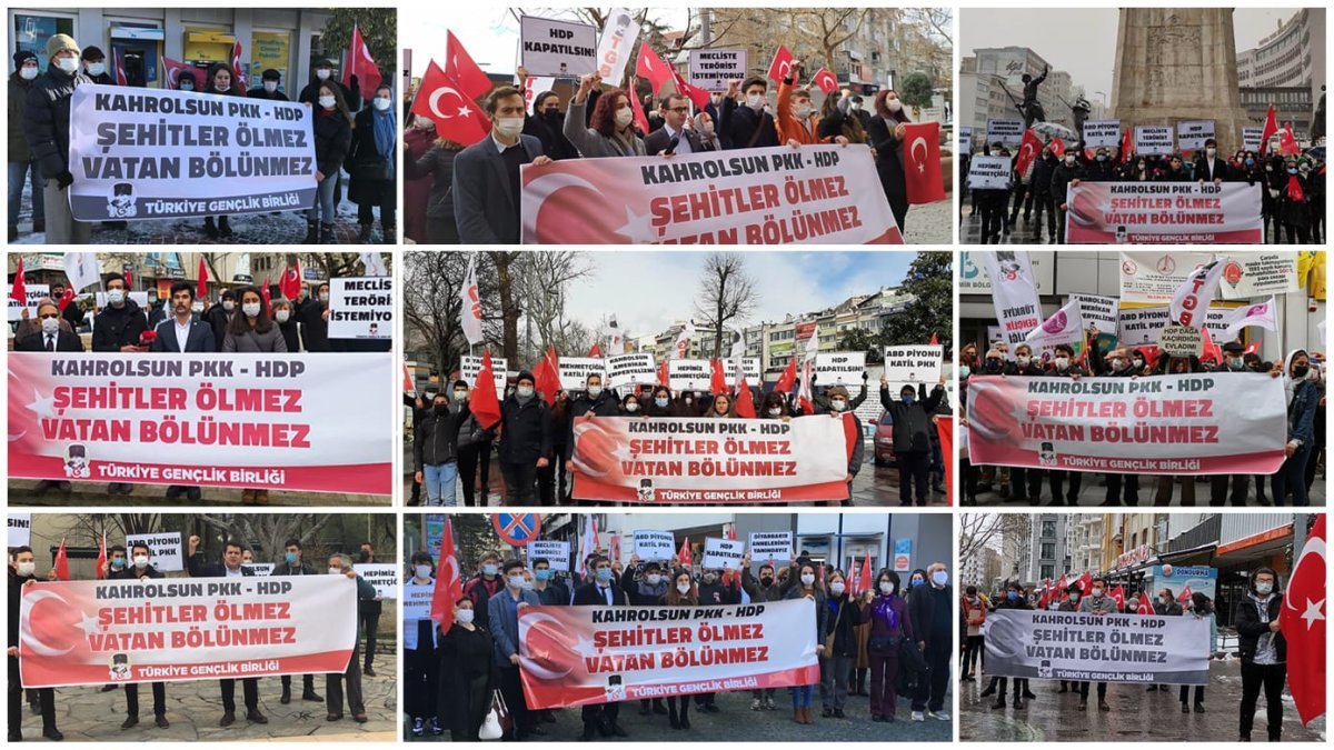Tüm yurtta “Kahrolsun PKK-HDP Şehitler Ölmez Vatan Bölünmez” pankartlarıyla “ABD Piyonu Katil PKK”, “Diyarbakır Annelerinin Yanındayız”, “Mehmetçiğin Katili ABD”, “Hepimiz Mehmetçiğiz” dövizleri taşıdık.