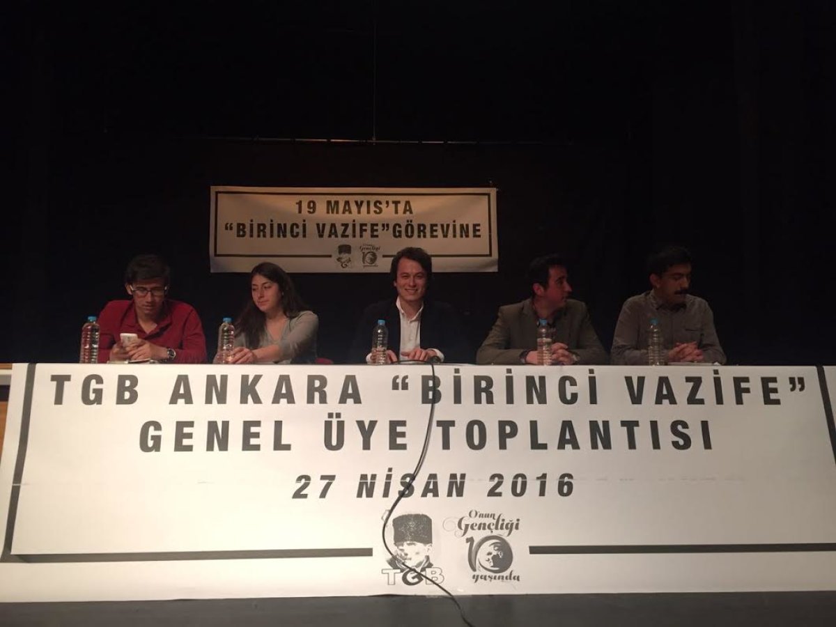 Ankara’dan üniversite öğrencisi liseli ve çalışan yüzlerce TGB üyesi, Gazeteci-Yazar Nihat Genç ,Türkiye Sanatçılar Birliği Genel Başkanı İnci Özdil ve Genel Başkanımız Çağdaş Cengiz’in katılımıyla TGB Ankara “Birinci Vazife” Genel Üye Toplantısı 27.04.2016 (Çarşamba) günü Ankara Yeni Sahne’de gerçekleşti. Toplantıda 19 Mayıs’ta gerçekleştireceğimiz yürüyüşün Ankara ayağı planlandı.