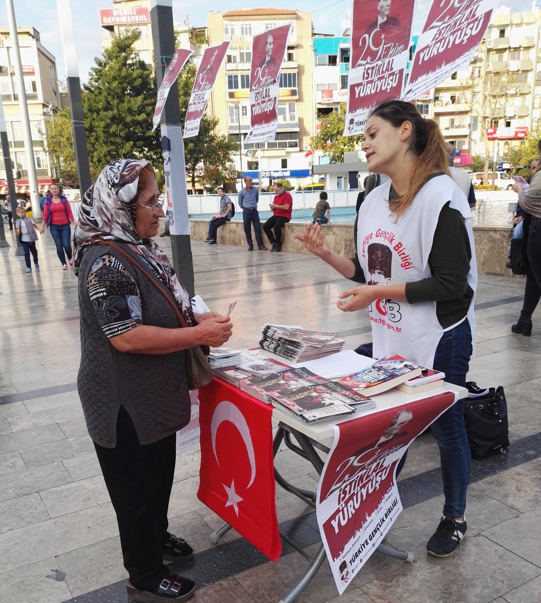 TGB Aydın, 29 Ekim İstiklal Yürüyüşü çalışmalarına hız kesmeden devam ediyor. İstiklal Yürüyüşü'nün başlamasına günler kala Aydın örgütü tüm gücüyle çalışıyor.