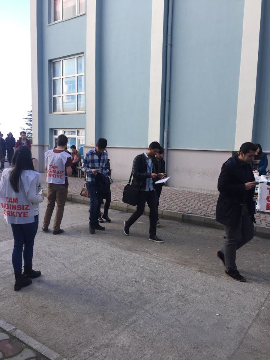 Kampüs içinde masa çalışmada üniversite öğrencilerine başkanlık sistemi ve yaratacağı sıkıntılar anlatılarak "HAYIR" oyu vermeleri için çalışma yapıldı. Çalışma bildiri dağıtımı ile sonlandırıldı.