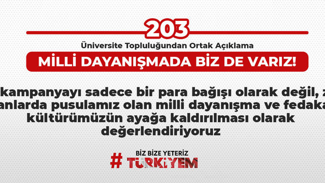 Türkiye’nin dört bir yanından 203 üniversite topluluğu, koronavirüsle mücadele kapsamında ilan edilen Milli Dayanışma Kampanyasına destek verdi