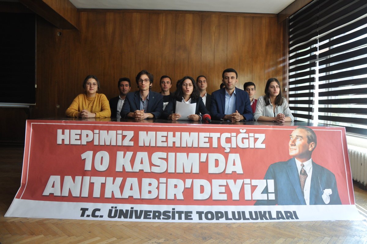 Türkiye’nin bütün üniversitelerinden 95 üniversite topluluğu, Ankara’da yaptıkları ortak basın açıklamasıyla 10 Kasım’da Anıtkabir’de olacaklarını ilan ettiler.