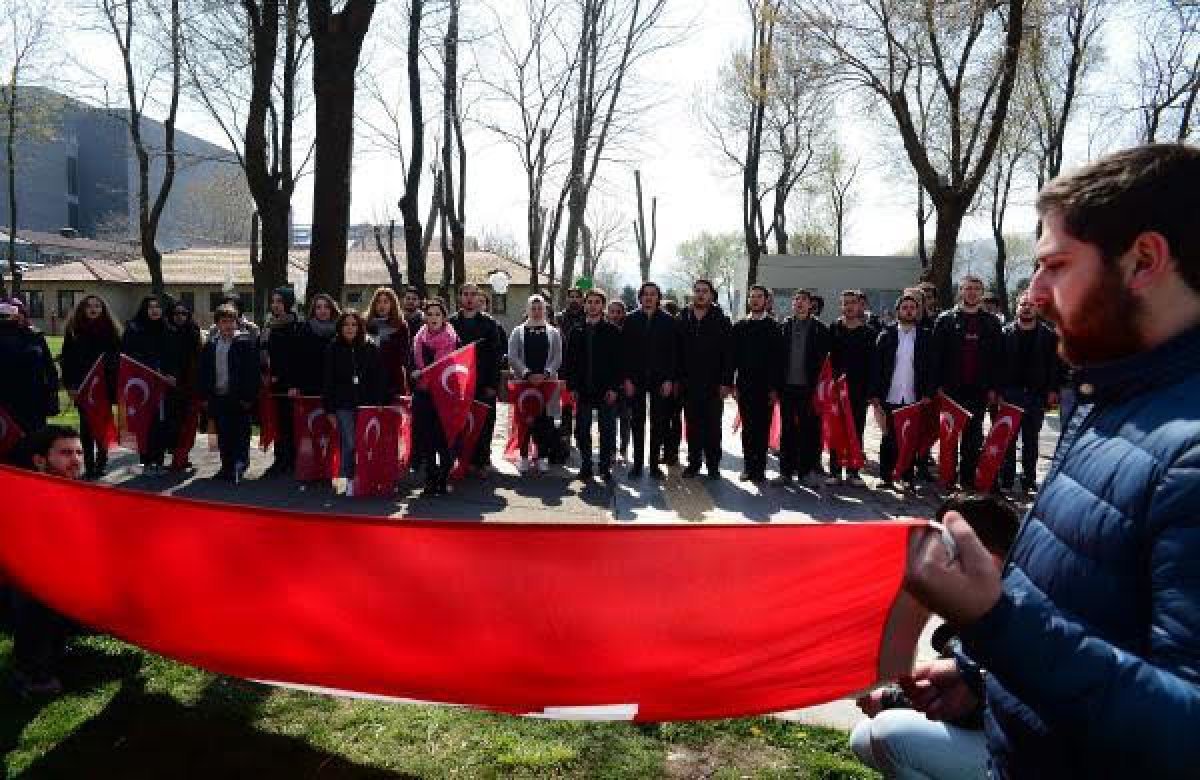 Okul kulüpleri, Ankara’daki son terör saldırısında ölen yurttaşlarımız ve Çanakkale şehitlerimiz için bir dakikalık saygı duruşunun ardından  ”Milli Marşı -KORKMA- diyerek başlayan bir neslin çocuklarıyız.” diyen öğrenciler hep birlikte İstiklal Marşını okudu. Türk bayrakları ve  şiirler içinde katılan kulüpler adına açıklama yapan Atatürkçü Düşünce Kulübü Başkanı Oğulcan Saraçlar şu sözlere yer verdi: