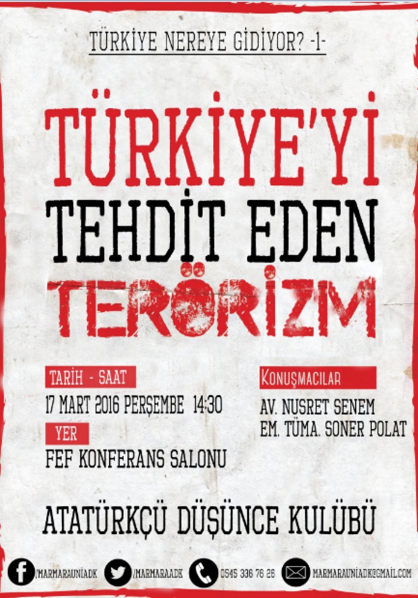 Öğrenciler, 17 Mart günü Atatürkçü Düşünce Kulübü’nün, Av. Nusret Senem ve Em. Tüm. Soner Polat’ın konuşmacı olacağı “Türkiye’yi Tehdit Eden Terörizm” konferansının ardından gerçekleşecek yürüyüşle, PKK’nın başkentimizi kana bulayan saldırılarına cevap verecek.