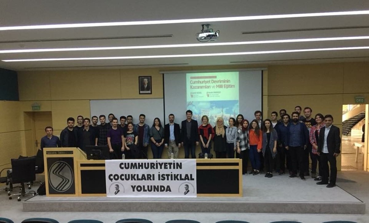 Sakarya Üniversitesi Atatürkçü Düşünce Topluluğu 20 Ekim Cuma günü saat 14:00’te Cumhuriyet Devrimi ve Milli Eğitim konulu konferans düzenledi.Teori dergisi Yazı İşleri Müdürü Cemil Gözel ve Bilim Ve Ütopya dergisi Genel Yayın yönetmeni Emrah Maraşo’nun konuşmacı olarak katıldığı konferansa üniversite gençliği yoğun ilgi gösterdi.19. Yüzyıldan günümüze Türkiye’nin milli eğitim politikalarındaki değişim ve dönüşümlerin detaylı bir şekilde işlendiği konferansta milli eğitim sistemimizde yapılan tahribat konuşularak çözümleri tartışıldı. Öğrenciler konuklara konuyla ilgili sorular sordu,etkinlik soru cevap kısmıyla sona erdi.
