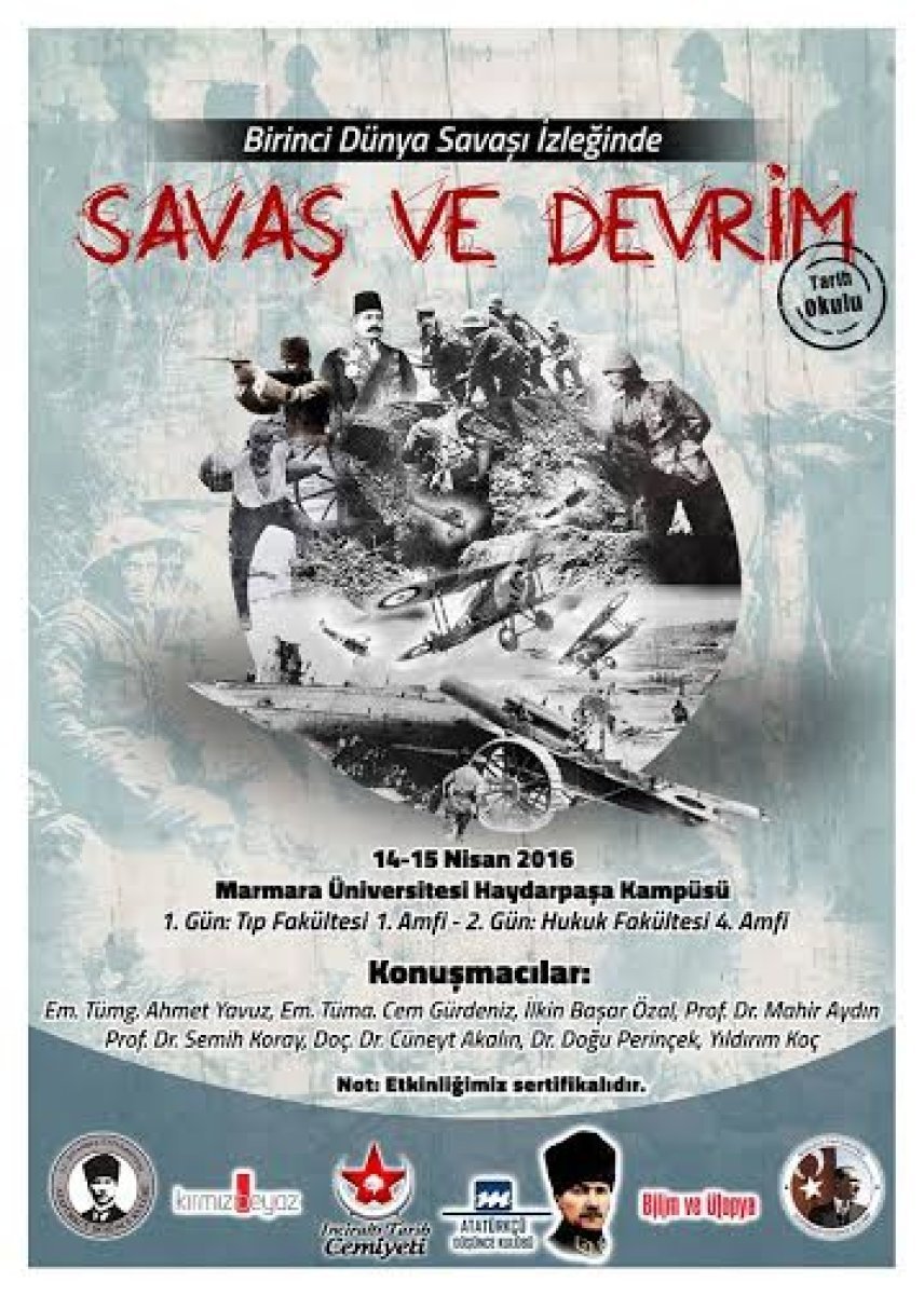 14-15 Nisan 2016 tarihlerinde Marmara Üniversitesi Haydarpaşa Kampüsü’nde düzenlenecek olan etkinliğin konusu “Birinci Dünya Savaşı İzleğinde SAVAŞ VE DEVRİM”.