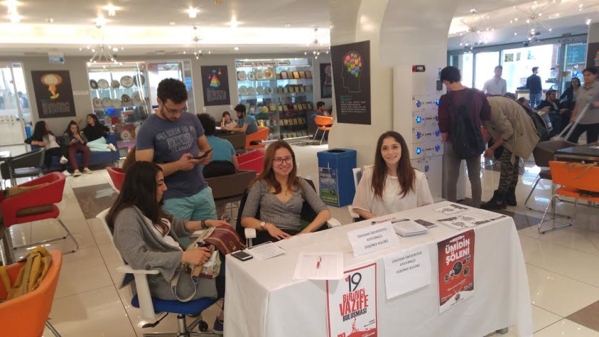 Üsküdar Üniversitesi Atatürkçü Düşünce Kulübü, “19 Mayıs Birinci Vazife Yürüyüşü” ve “Ümidin Şöleni” çalışmalarına başladı. Panolara afiş asıp, Masa açıp bildiri dağıtarak tüm Üsküdar Üniversitesini 19 Mayıs saat 12.00’da Şişli Atatürk Evi’nin önüne Birinci Vazife Yürüyüşüne davet etti.