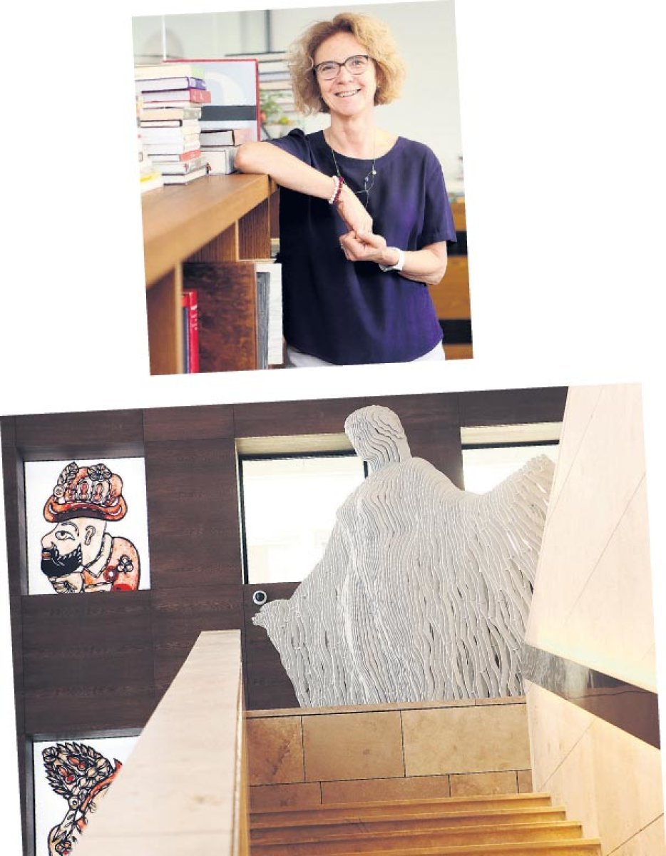 Kitapçının üst katında ise Yapı Kredi’nin dünya çapında önemli sikke koleksiyonunun sergilendiği müze konumlanıyor. Üçüncü katın lise tarafına ise caddeden görülebilecek bir konuma İlhan Koman’ın ünlü ‘Akdeniz’ heykeli yerleştirilmiş. Heykel caddeyle ve Koman’ın yakın arkadaşı olan Sadi Çalık’ın Galatasaray Meydanı’ndaki soyut heykeliyle de camlar sayesinde bakışıyor gibi konumlanıyor.