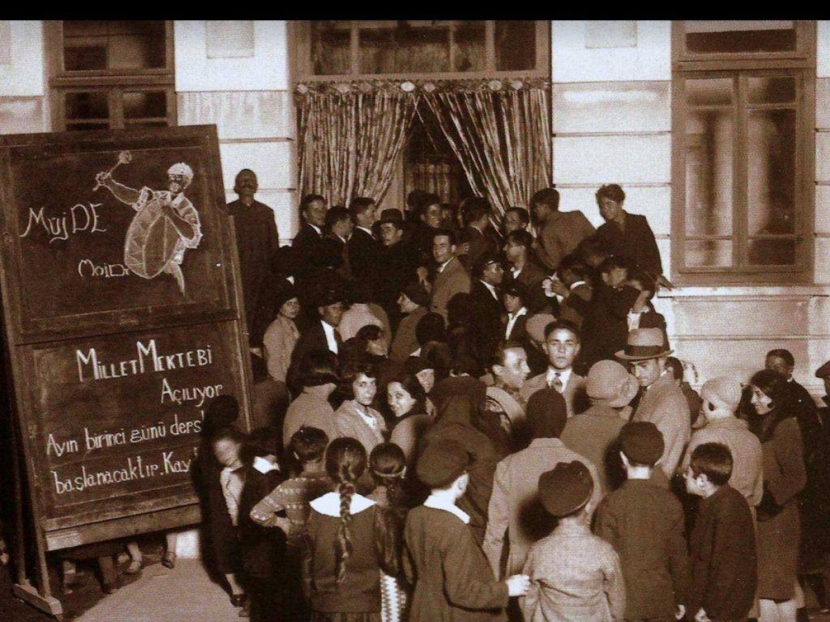 Yüzlerce yıldır İslâm kültürünün sembolü olarak algılanan Arap Alfabesi kolay yoldan okuryazar olmanın en büyük engellerinden biridir. İlk olarak 17. yüzyılda Kâtip Çelebi’nin dile getirdiği Arap harfleriyle Türkçe sözcükleri yazmanın güçlüğü, sonra Tanzimat döneminde tartışılan, 2. Meşrutiyet yıllarında aydınlarca sık sık dillendirilen Latin Alfabesinin benimsenip bir Türk Alfabesinin oluşturulma vakti gelmiştir. 1 Kasım 1928 gün ve 1353 Sayılı Türk Harflerinin Kabulü ve Uygulaması Hakkında Yasa çıkarılarak okumaz yazmazlığa bir çözüm getirilmiştir. Böylece halkın daha kolay okuması, yazması ve aydınlanması için halk eğitim programı yapılır.