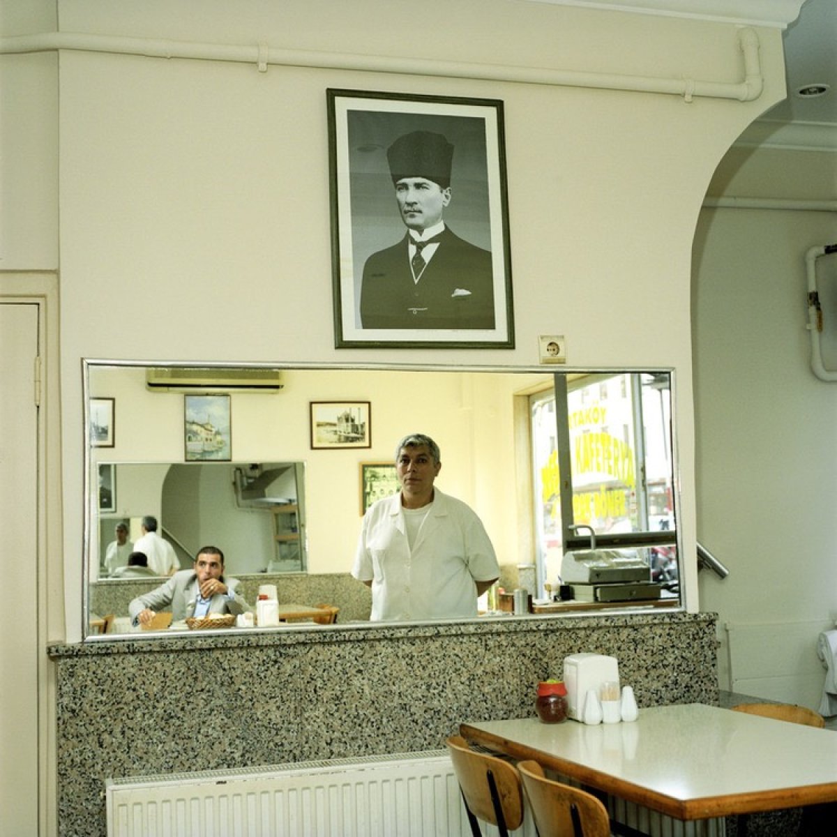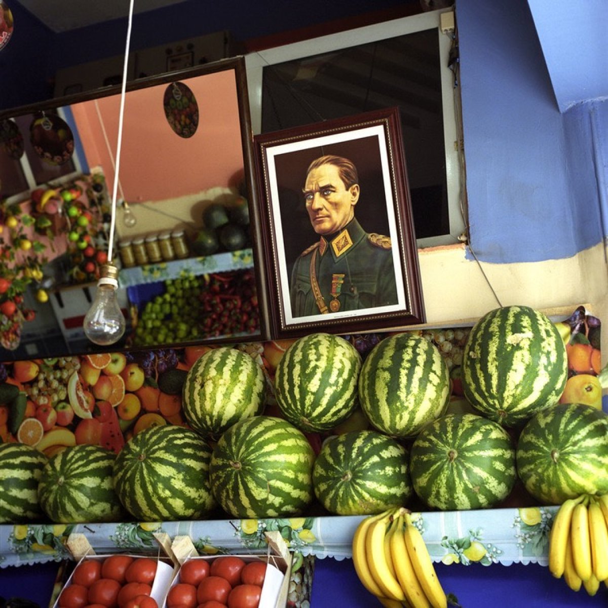 “Göz alıcı yeşil karpuz yığınlarıyla ve taze domates kümeleriyle dolu manavları hatırlıyorum ve bunların üzerinde gururla oturan bir Atatürk portresi. Tatlı pastel renkte duvarları olan kahvehanelerde zarifçe çerçevelenmiş ve yükseğe asılmış Atatürk portreleri… Tüm mekana egemen… Atatürk ayrıca kişisel aile fotoğraflarının, takvimlerin, İstanbul tabloları reprodüksiyonlarının, ticaret ve iş adamlarına ait sertifikaların yanında ortaya çıkabilirdi. İşte bu kompozisyonlar, bir iç mimari dergisinin sayfalarına kolayca yerleşebilirdi.”