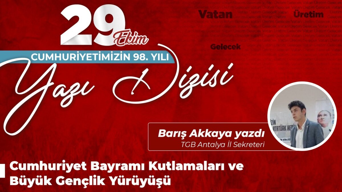 Bayramlar ve kutlamalar, bir toplumun ortak değer ve davranış ölçülerinin bireyler tarafından bilinçli bir şekilde kavranıp benimsenmesi ve yeni kuşaklara aktarılmasında önemli bir işlevi yerine getirirler. Türkiye’nin bu büyük mirasına bugün sahip çıkmak Türkiye Gençlik Birliği önderliğindeki Türk gençliğinin vazifesidir. İçine girdiğimiz zorlukları kenetlenerek aşacağız. 98 yıllık şölenimizi bu sene tarihi 1.Meclis önünden Anıtkabir’e Ata’mızın huzuruna yürüyerek gerçekleştireceğiz. Bu tarihi yürüyüşte hep birlikte kenetlenelim!