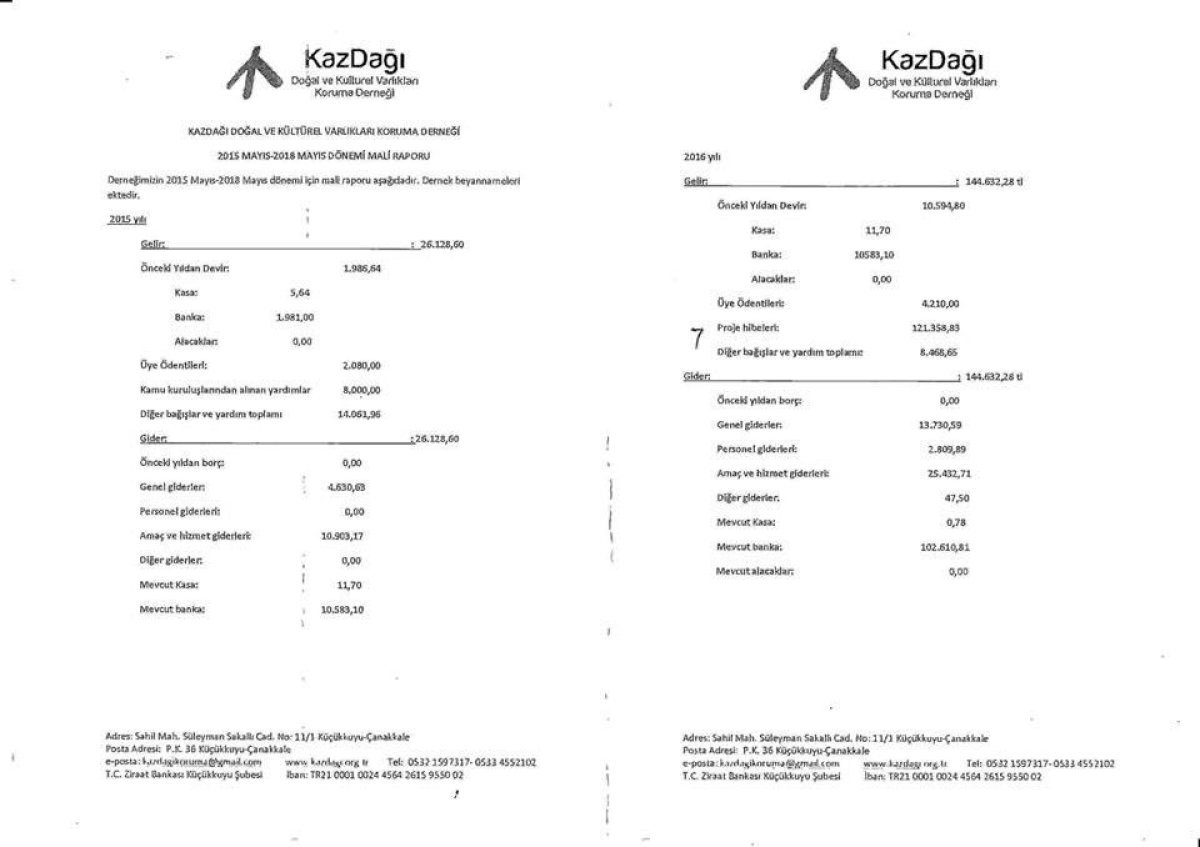 Bu vakıf, dolayısıyla Avrupa Birliği 2016 yılında Kaz Dağı Doğal ve Kültürel Varlıkları Koruma Derneği’ne para aktarmaya başlamış. Bu hibe, derneğin kendi raporlarına da yansımıştır.