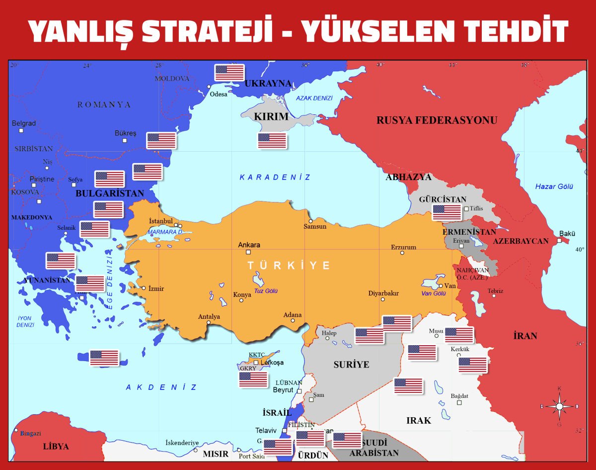 ABD’nin tek cephesi ortadayken, Türkiye’nin dört bir tarafı ABD üsleri ile çevrelenmiş iken düşman bellidir.
