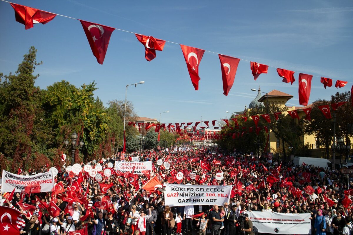 200 Yıllık Türk Devrim zincirinin en kritik halkası olan Cumhuriyet’in 100. yılını doldurduk. Mustafa Kemal’in Onuncu Yıl Nutku’nda söylediği gibi bu, ‘’en büyük bayramdır, kutlu olsun!’’ Bizler için cumhuriyet, yalnızca bir gün, bir ilan, bir kutlama günü değil, bir irade, kararlılık, cesaret, azim ve hamiyyetle, Türkiye’nin içinde bulunduğu koşullar çerçevesinde vurgular yapılması gereken, anlamını bu minvalde çizdiğimiz ve sorunlara çözüm getirdiğimiz bir gündür. Bunu, 100. yılda Birinci Meclis önünde buluşup yaptığımız yürüyüşle tekrar gösterdik.