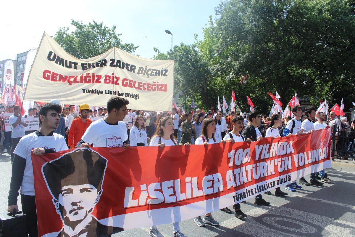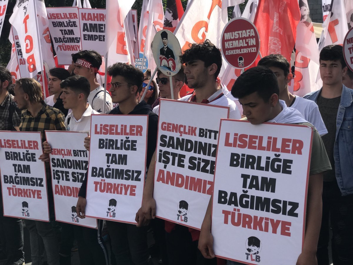 Türkiye Liseliler Birliği’nin (TLB) korteji ise eylemin en renkli karelerini oluşturdu. “Filmin sonunda ABD yeniliyor”, “Seri S400 getir ABD kudurdu”, “Gençlik bitti sandınız işte size Andımız” yazılı pankartlar taşıyan liseliler, mizahi bir dille siyasi tavırlarını ortaya koydu. Gençler, “Liseliler Atatürk’ün yolunda” ve “Umut eker zafer biçeriz, gençliğiz biz geleceğiz” pankartlarıyla da umut ve güven aşıladı.