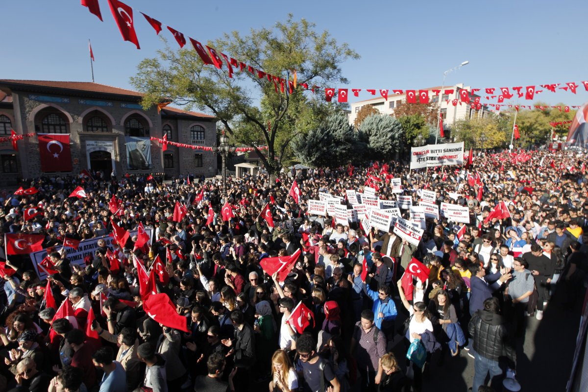 29 Ekim’de Ankara’ya akın eden gençler, Anıtkabir’de hep bir ağızdan Andımız’ı okudu. Arslanlı yol “Varlığımız Türk varlığına armağan olsun” sözleriyle yankılandı.