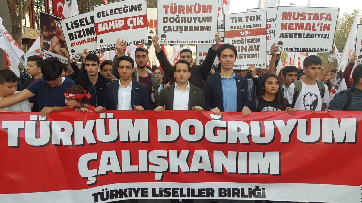 Liselilerin hazırladıkları eleştiri içerikli mizahi dövizler eyleme renk kattı. Türkiye Liseliler Birliği (TLB) kortejinin en önünde “Gençlik Bitti Sandınız, İşte Size Andımız” yazılı pankart taşındı. “Türküm Doğruyum Çalışkanım”, “Geleceğine Sahip Çık”, “Mustafa Kemal’in Askerleriyiz” dövizlerinin yanı sıra “Andımızı Okumak İçin Yarışan Nesile Sataştın”, “Sınavlar Derya Olmuş Biz De Bir Sandal” yazılı espirili dövizler de taşındı. En çok ilgi çeken ise üzerinde “Yıkıkları Etiketliyoruz” yazan Trump görseli oldu.