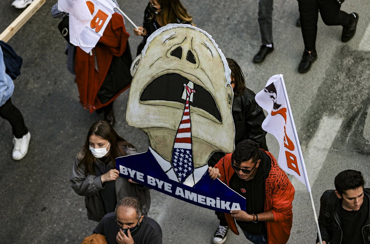 Yürüyüşte “Z Kuşağı Değil, Türk Gençliğiyiz” “ Ya İstikal Ya Ölüm” “Çalışan Gençlik, Üreten Cumhuriyet”, “Hepimiz Eren Bülbül’üz” pankartlarının yanı sıra Biden’ın ağlayan fotoğrafının olduğu “Çare Gelmez Ağlamaktan Başka Yol Yok Kaçmaktan” pankartını kullandık.