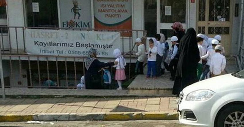 Cumhuriyet gazetesinden Hazal Ocak’ın haberine göre, Kadıköy Esatpaşa Mahallesi’nde bir bodrum katının girişinde Hasret-2 Anaokulu ve irtibat numarasının yazdığı bir muşamba asılı. Kaçak eğitim verdiği öne sürülen anaokulunun kapısında Mili Eğitim Bakanlığı’na bağlı olduğuna dair hiçbir tabela olmadığı gibi Milli Eğitim Bakanlığı’nın logosu da bulunmuyor. Velilerin 5-6 yaşlarındaki çocuklarını anaokulana türban ve takkeyle getirdikleri görüldü.