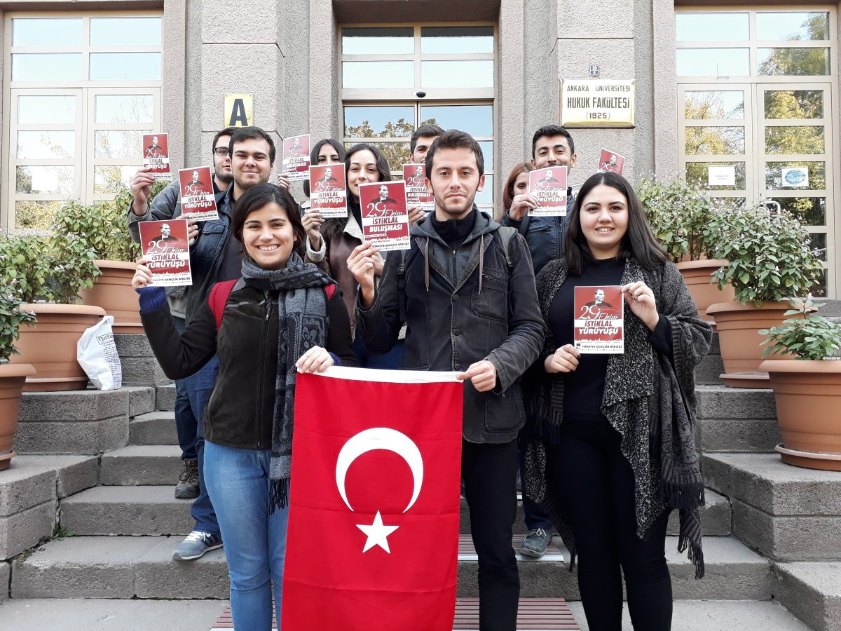 Ankara’nın gözde üniversitelerinde yaratılan İstiklal Yürüyüşü havası sürdürülmeye devam ediyor. Ankara Üniversitesi, Gazi Üniversitesi, Hacettepe Üniversitesi, ODTÜ ve Bilkent Üniversitesi olmak üzere tüm kampüslerde: kampüs içlerinde de amfi, kantin, kütüphanelerde yürütülen çalışmalarla öğrenciler 29 Ekim’de İstiklal Yürüyüşü’ne çağrılıyor.