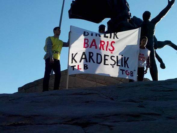 Yürüyüş sırasında “Barış, Birlik, Kardeşlik”, “Türk Kürt kardeştir Amerika kalleştir”,”Mustafa Kemal’in askerleriyiz” sloganları atıldı.