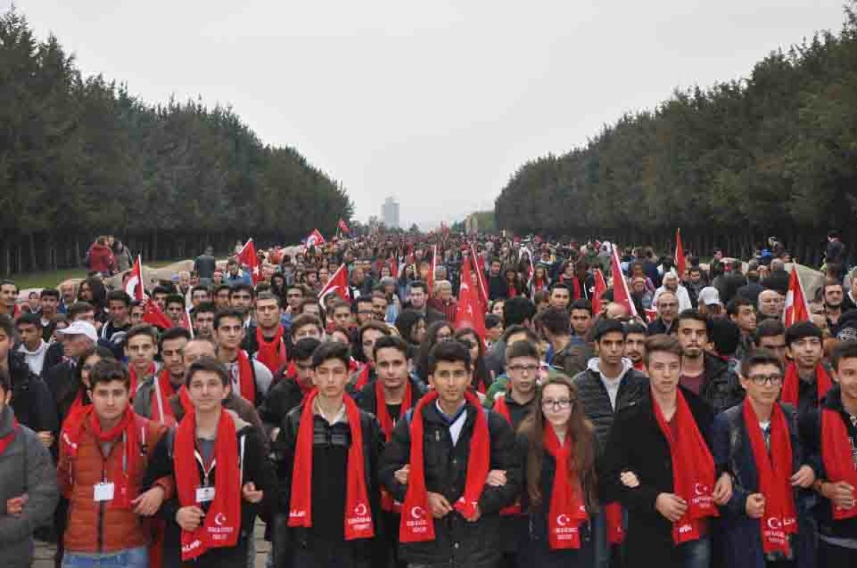 Güvenpark’taki konuşmaların ardından binlerce yurtsever Anıtkabir’e yürüdü. Yürüyüş sırasında en önde ‘‘Başkanlığa hayır, yaşasın cumhuriyet’’ pankartı taşındı.