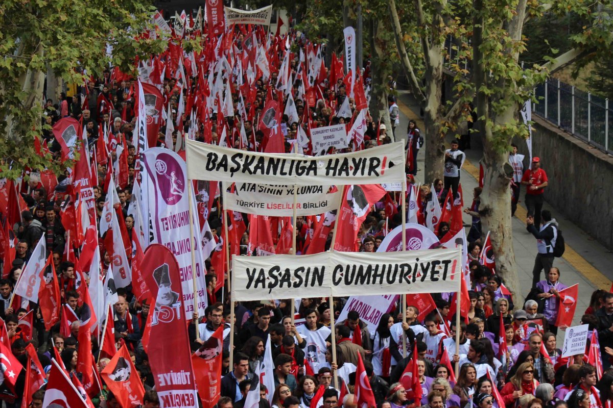 Güvenpark’tan Anıtkabir’e ‘‘Başkanlığa Hayır, Yaşasın Cumhuriyet’’ ve ‘‘Cumhuriyet Geleceğimizdir’’ pankartları ile yüründü.