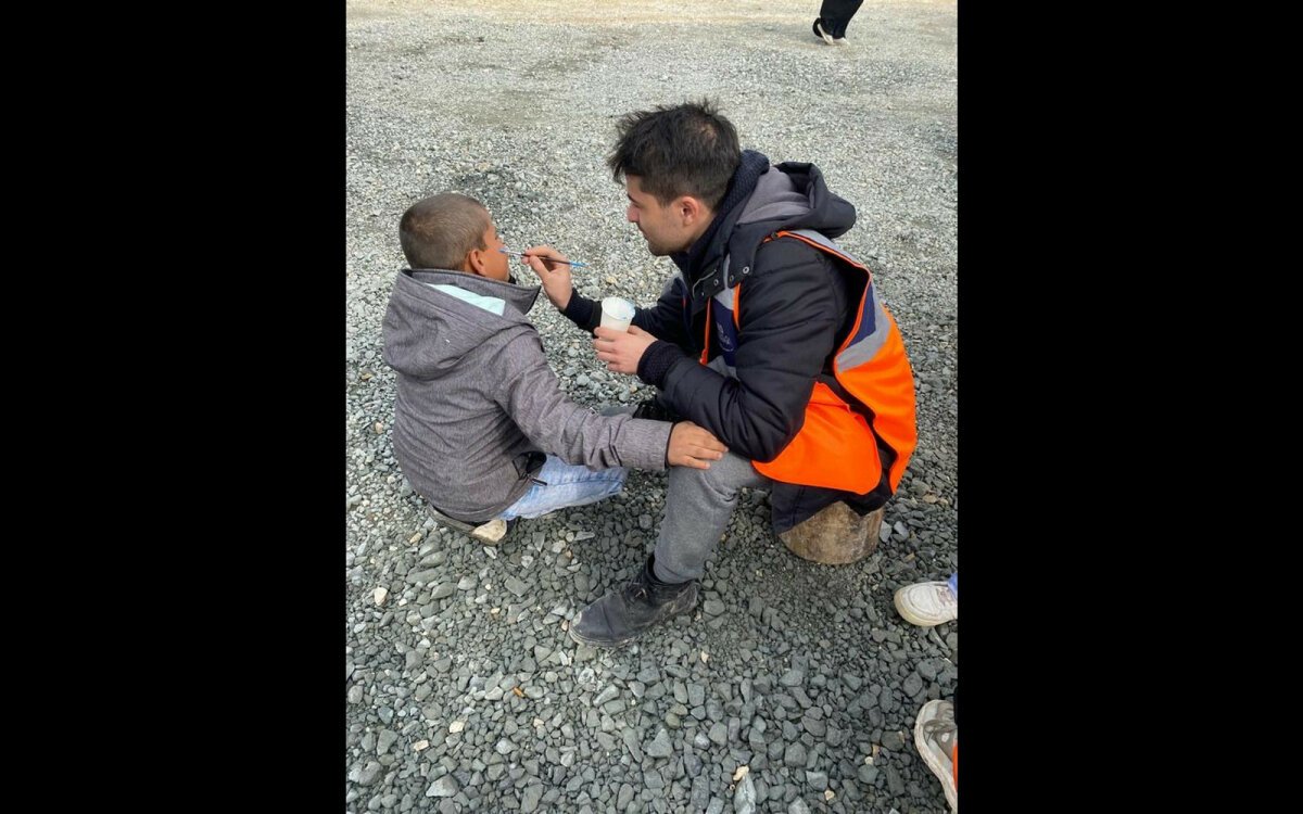 TGB’li gençler, Hatay’daki çadır kentte bulunan çocuklarla boyama yaparak depremin acısını el birliğiyle hafifletiyorlar.