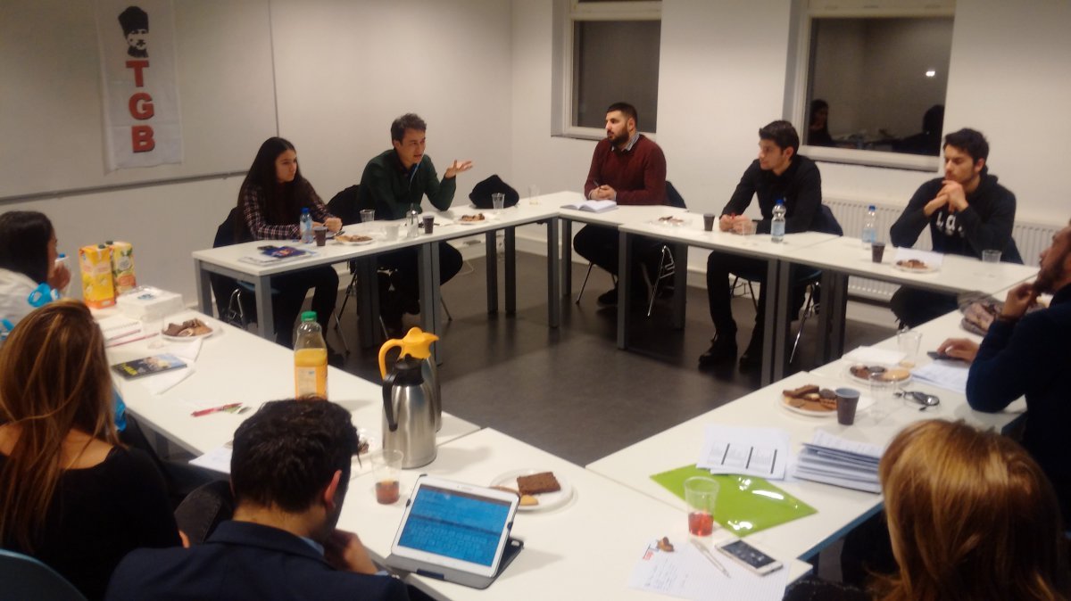 Genel Başkanımız Çağdaş Cengiz ve Genel Başkan Yardımcımız Elif İlhamoğlu, önümüzdeki dönemi planlamak ve mücadele takvimi çıkartmak üzere TGB Avrupa örgütlerini ziyaret ettiler. İlk ziyaret noktaları Hollanda oldu. Başkent Amsterdam’da TGB yöneticileri ile bir araya gelen Çağdaş Cengiz ve Elif İlhamoğlu Türkiye’deki siyasi durumu arkadaşlarla tartışarak buradan Avrupa TGB’ye düşen görevleri tespit ettiler. Yeni Anayasa, Suriye direnişi, göçmen sorunu, bölücü terör örgütü PKK ile mücadele gibi siyasi gündem alt başlıkları tartışıldıktan sonra TGB 10. Yıl çalışmaları ve Türkiye programı aktarıldı. Sonrasında TGB Hollanda’nın 10. Yıl çalışmaları kapsamında önümüzdeki dönem planları yapıldı.