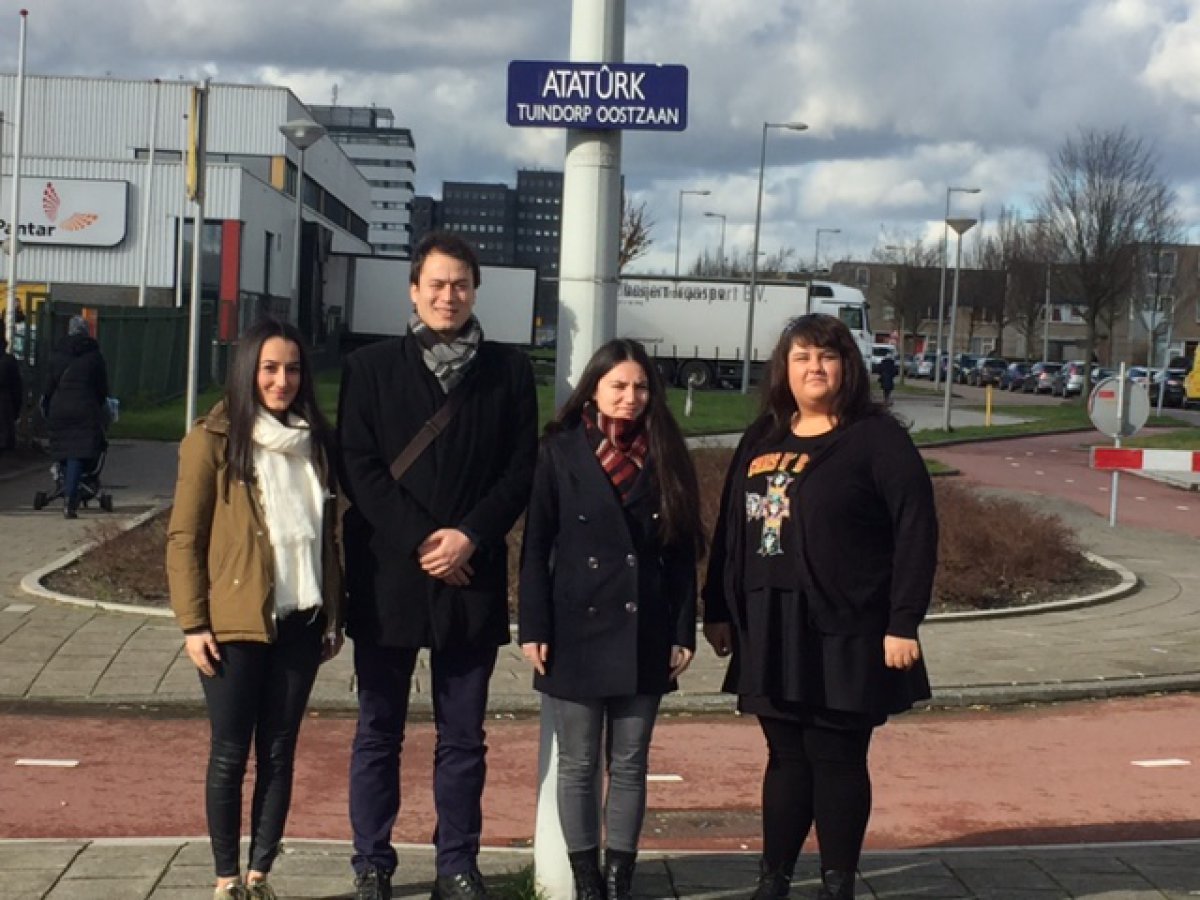TGB Hollanda yöneticileri ile buluşmanın ikinci gününde Çağdaş Cengiz ve Elif İlhamoğlu Amsterdam’da Türk işçiler tarafından 1979 yılında yapılan, üzerinde Mustafa Kemal’in Yurtta Sulh Cihanda Sulh sözünün Türkçe ve Almanca’sının da yazılı olduğu Atatürk Anıtı‘nı ziyaret ettiler.