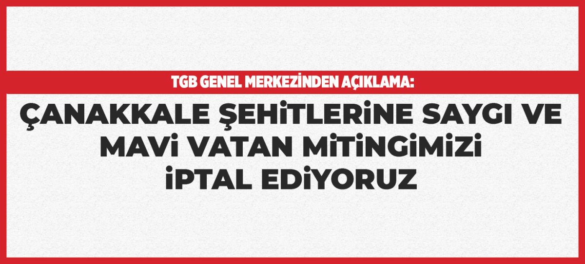 Bu nedenle, Türkiye Gençlik Birliği olarak, 15 Mart tarihinde Çanakkale’de gerçekleştireceğimiz ‘’Mavi Vatan Mitingi ve Şehitlere Saygı Buluşmasını’’ halk sağlığını tehlikeye atmamak amacıyla iptal ediyoruz.