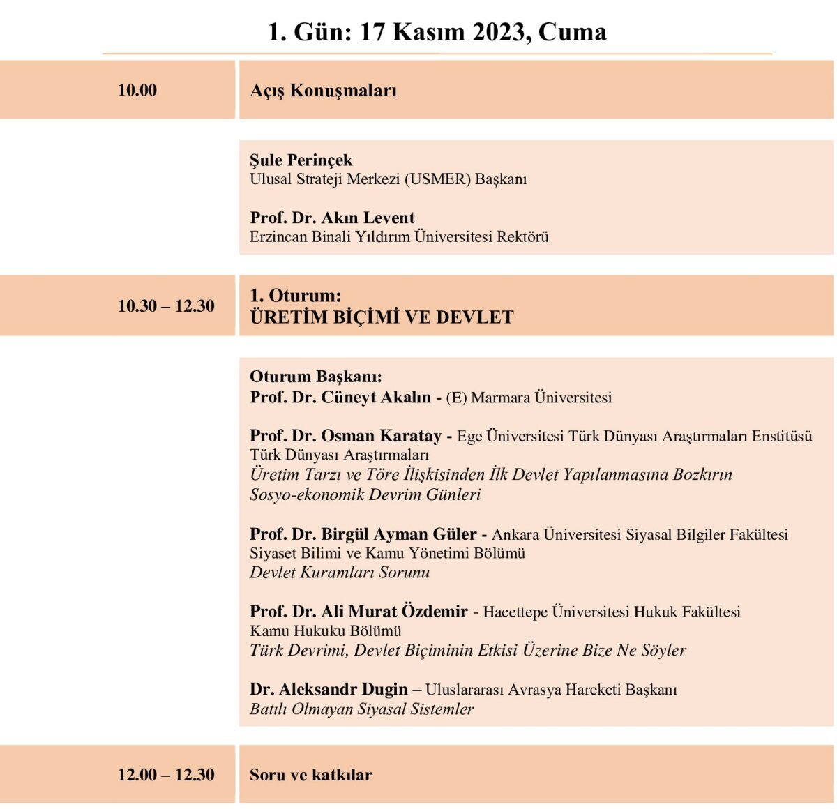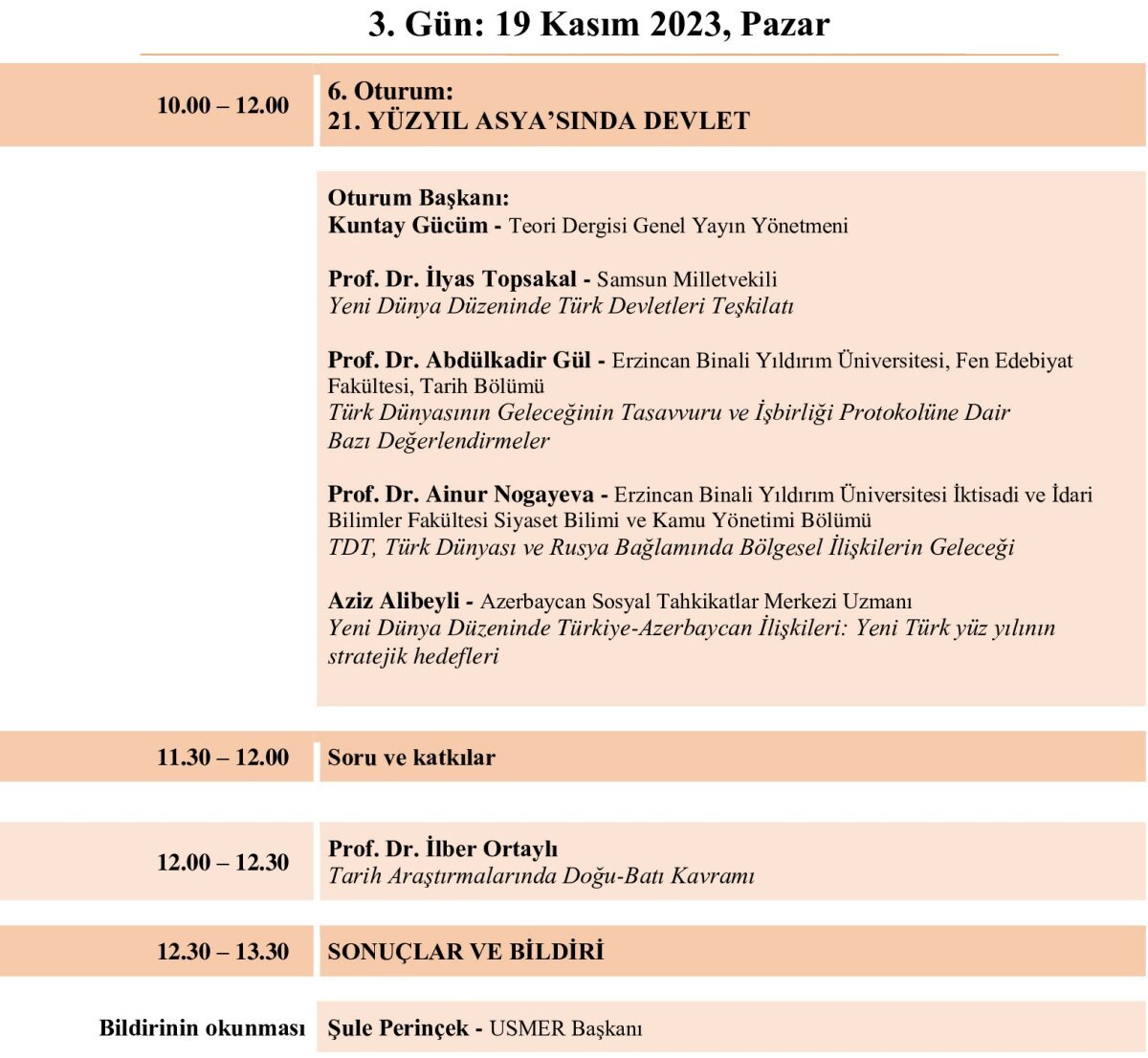 📌Ulusal Strateji Merkezi’nin düzenlediği “Türkiye Cumhuriyeti’nin 100. Yılında Asya’da Devlet Birikimi Uluslararası Çalıştayı” 17-18-19 Kasım’da yapılacaktır.