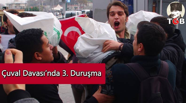 12 Kasım 2014 İstanbul Sarayburnu’nda ABD askerlerine geçirdiğimiz çuvalın davasında 3.duruşma 11 Eylül Cuma(Yarın) gerçekleşecek. Duruşmada yalnızca polislerin ifadeleri alınacak. Dikkat çeken bir durum ise duruşma tarihinin bir önceki duruşma tarihi gibi manidar olması. Bir önceki duruşma Deniz Gezmiş, Yusuf Aslan ve Hüseyin İnan’ın idam edildikleri 6 Mayıs günü yapılmıştı. Bu duruşma ise ABD’nin kendi tabiriyle Haçlı Seferleri’nin başladığı tarih. Genel Başkanımız Çağdaş Cengiz konuya dair şu açıklamalarda bulundu: “Çuval davamız 3. duruşması ile devam ediyor. Dava tarihleri gerçekten bizim için anlamlı günlere denk geliyor. 2.duruşma 6 Kasım’da Amerikan 6. Filosu’nu denize döken Deniz Gezmişlerin idamının yıldönümü idi. Şimdi 3. duruşma ise 11 Eylül’e, yani Amerika’nın kendi tabiriyle “Haçlı seferi” ni başlattığı tarihe denk geldi. Amerika 11 Eylül 2001 saldırısının ardından terörizm ile savaş adı altında Afganistan’ı işgal etti ve Ortadoğu’da büyük bir yıkım başlattı. Türkiye’yi de bu sefere dahil etme planları yaptı. 24 ülkenin sınırlarının yeniden belirlenecegi Büyük Ortadoğu Projesi için yeni terör örgütleri yarattı, var olanları besledi. Elbette bu projede en önemli araçlarından biri de terör örgütü PKK idi. Obama bugün PKK’ya kara gücüm diye sesleniyor ve Amerika’nın özelikle bölgede PKK’ya biçtiği rolün arttığını görüyoruz.PKK, Suriye’nin kuzeyinde bir Amerikan-İsrail projesi olan “Kürt Devleti” yaratma sürecinin kara gücü haline geldi fakat ordumuz TSK buna izin vermedi. TSK, Amerika’nın bu projesine karşı çıktığı için bugün mehmetçiklerimiz hain pusularla şehit ediliyor. Türkiye’nin dört bir yanından şehit haberleri gelmesine rağmen ordumuz, PKK’ya ve Amerikan planlarına karşı kararlılıkla mücadele ediyor. Bugün Türk milleti de Türk gençliği de yaptığı eylemler ile mehmetçiklerimizin arkasında olduğunu büyük bir kararlılık ve coşku ile gösterdi. Biz de Türkiye Gençlik Birliği olarak terör örgütü PKK’nın ve Amerikan emperyalizminin alçak planlarına izin vermeyeceğimizi bir kez daha ilan ediyoruz. Mehmetçiğimize geçirilen çuvalın hesabını sorduk, hain pusuların da hesabını sormaya hazırız. Mehmetçiğimizin katili Amerikan emperyalizmidir. Hepimiz Mehmetçiğiz!