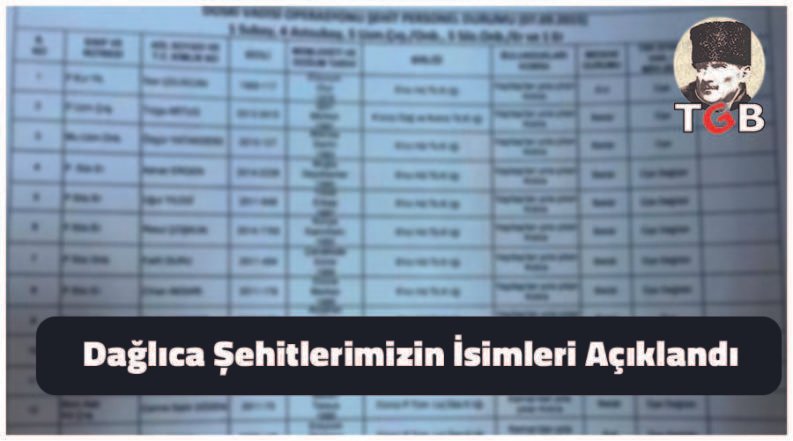 Dağlıca Şehitlerimizin İsimleri Açıklandı