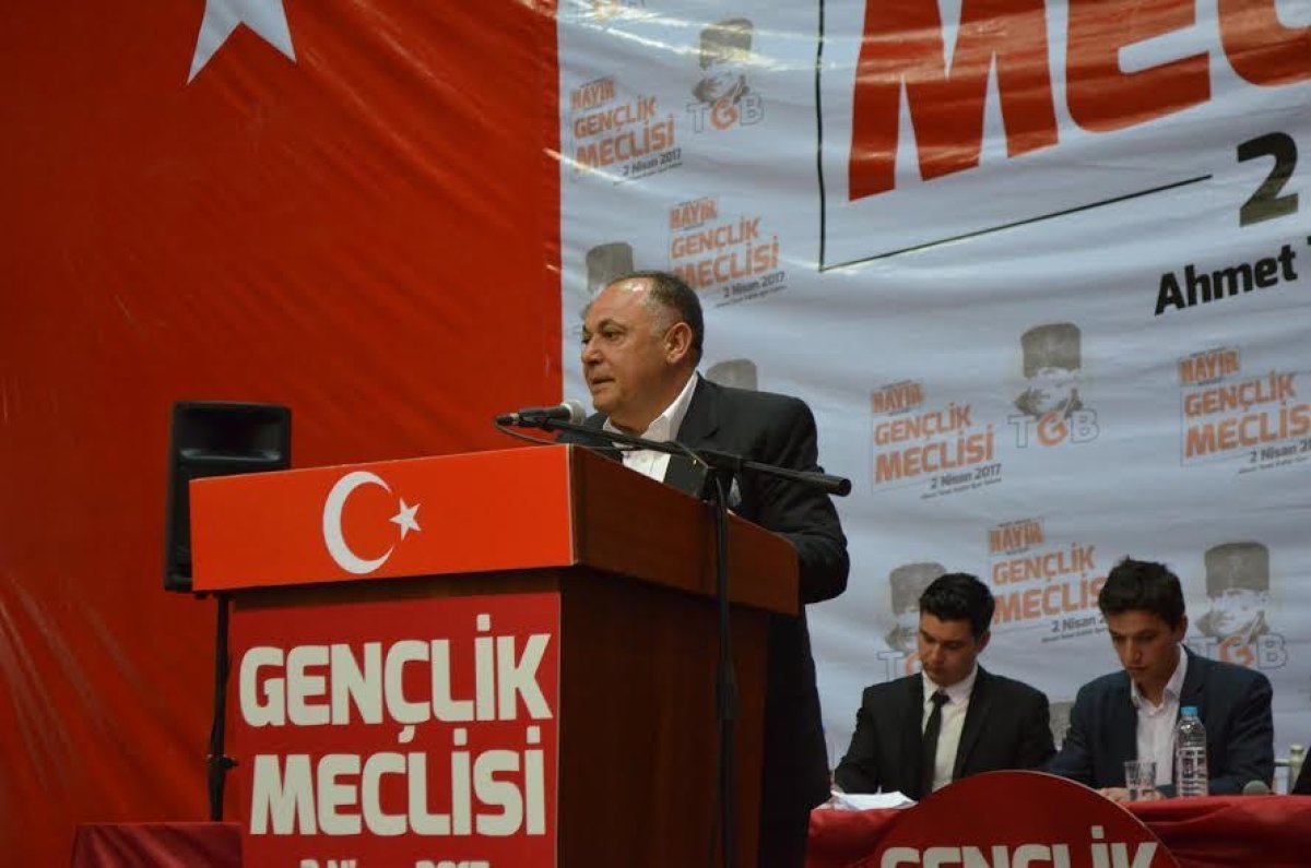 Hasan Korkmazcan; ‘‘Türk Kurultayları geçmişte olduğu gibi bugün de tarihe yön verecektir. Siz bugünün enerjik ve öncü gücüsünüz. Karşımıza getirilen başkanlık sistemi, temelsiz bir sistemdir. Bugün Ankara’da iki büyük toplanı var. Biri TGB’nin hazırladığı Gençlik Meclisi, biri de AKP’nin hazırladığı hipodromdaki toplantı. Buradaki toplantı kurucu, yapıcı idarenin doğrultusundadır, hipodromdaki toplantı yıkıcı düşüncelerin istikametindedir. Hipodromdaki toplantıda bir araya gelenler, dün Diyarbakır’da biz Türk demiyoruz tek millet diyoruz diyorlardı. 2004 yılında Türk millletinin adını anayasadan çıkarın diyen talimatın yeni bir yansımasını dün Diyarbakır’da gördük. Tek millet sanki Türk milletinin alternatifiymiş gibi. Bu milletin adını söylemekten kaçınanlar bu milletin başında yöneticilik yapamazlar. Bu milletin adını anayasadan silmeye çalışanlar dünyanın bütün kütüphanelerini yaksalar başarılı olamazlar.Yapıcı insan iradesi bugün burada, yıkıcı irade orada.’’ şeklinde konuştu.