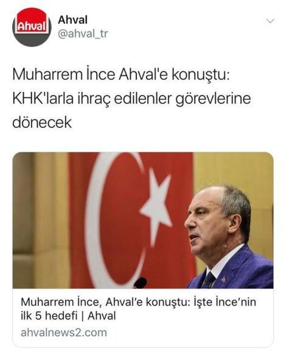 2019’da terörle işbirliği yapan belediyelere kayyum atanmasına karşı desteğe koştunuz. Bugün Kılıçdaroğlu’nun en gür sesle savunduğu ‘KHK’lıları göreve iade edeceğiz’ vaadi de sizin ‘ilk 100 gündeki’ vaatlerinizdendi. FETÖ’nün uluslararası medya organı Ahval’de söylediniz.