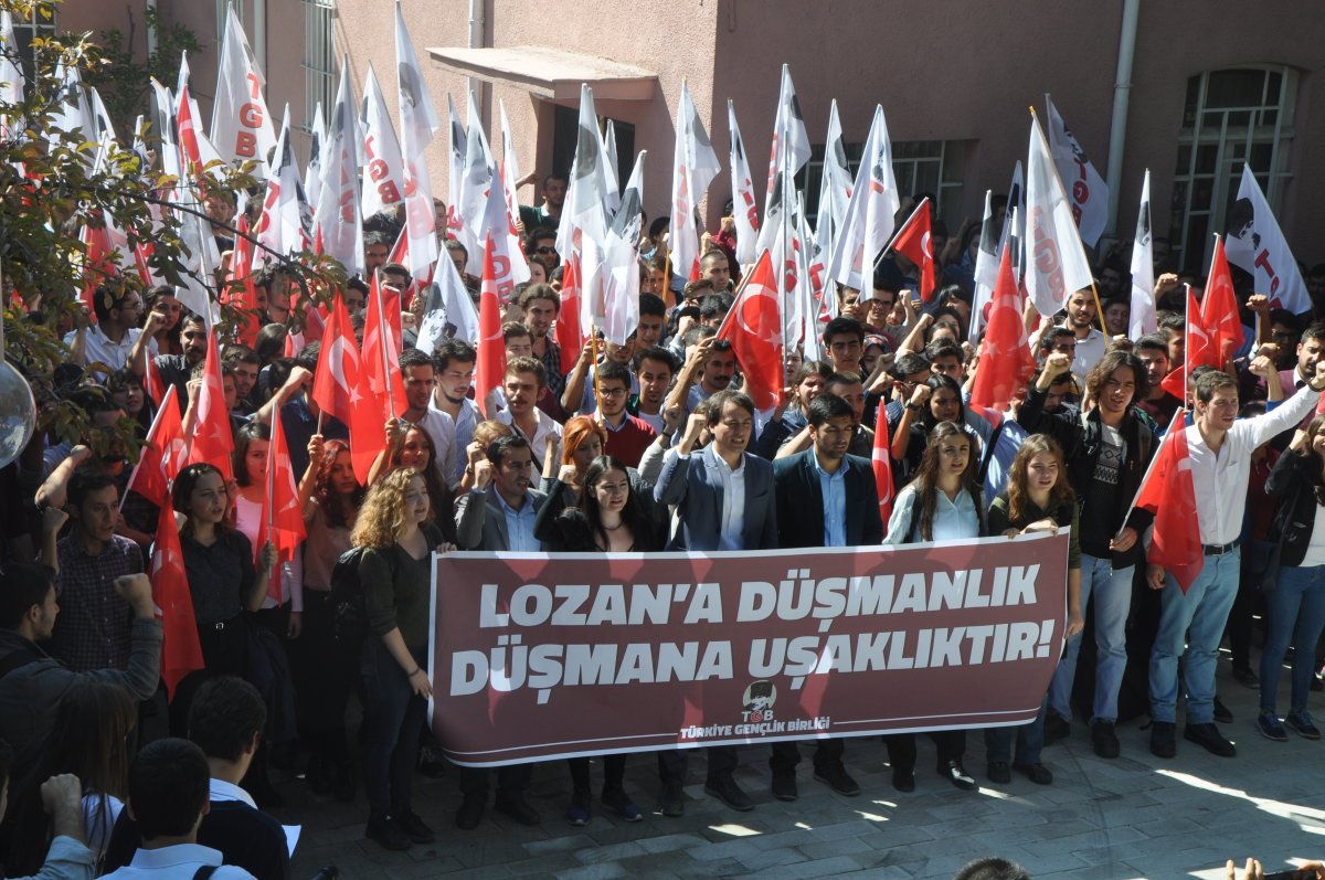 Cumhurbaşkanı Recep Tayyip Erdoğan Perşembe günü yapılan muhtarlar toplantısında Lozan’ı hedef alarak ‘‘Lozan’ı bize zafer diye yutturmaya çalışıyorlar’’ dedi. Açıklama, toplumun geniş bir kesimi tarafından tepkiyle karşılandı. Türkiye Gençlik Birliği olarak Lozan’ın kahramanı İsmet İnönü’nün Ankara’daki evinde toplanarak Erdoğan’ın açıklamalarını protesto ettik.