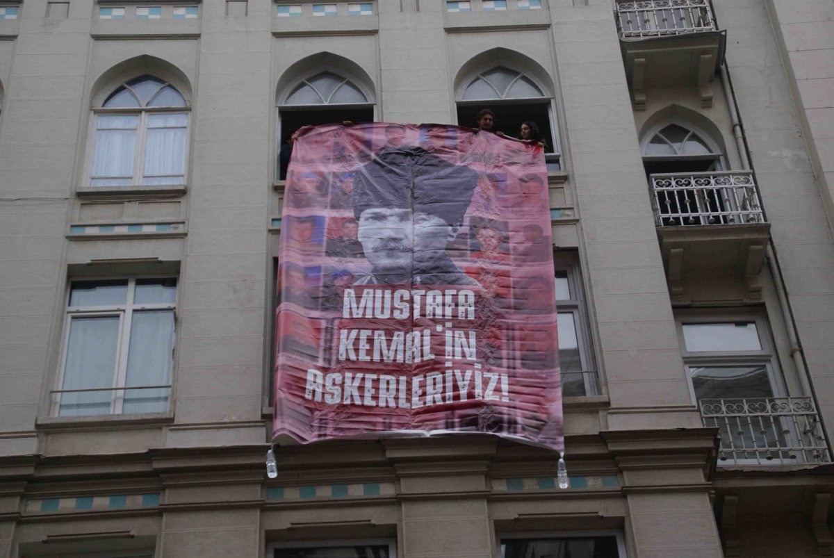 SÖKTÜKLERİ ATATÜRK RESMİNİ GENEL MERKEZLERİNE ASANLAR