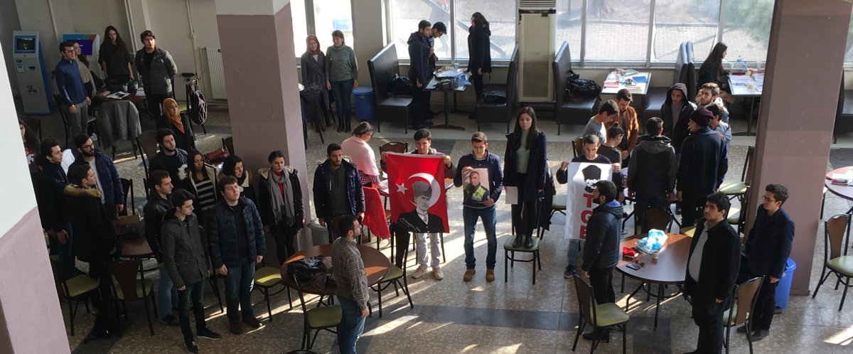 Şehit Polis Fethi Sekin için yapılan anmalarda saygı duruşu ve İstiklal Marşı’nın ardından “Mustafa Kemal’in Askerleriyiz” ve “Şehitler Ölmez Vatan Bölünmez” sloganları atıldı ve öğrencilere Fethi Sekin’in resminin olduğu yaka kartları dağıtıldı.