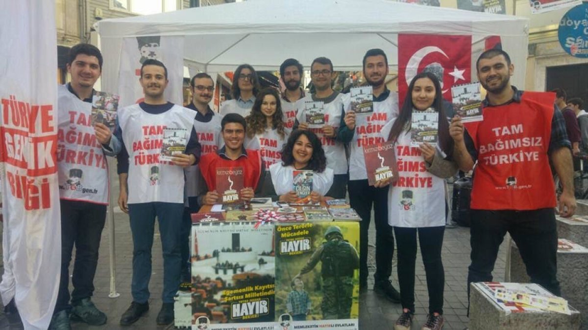 Bildiri ve afiş çalışmalarının yanı sıra, Kadıköy, Beşiktaş ve Bakırköy’de açtıkları stantlarla vatandaşlarımıza ulaşan TGB İstanbul üyeleri, “önce terörle mücadele, önce birlik ve bütünlük, önce geçim ve refah” diyerek tüm vatanseverleri hayır’da birleşmeye çağırıyor.