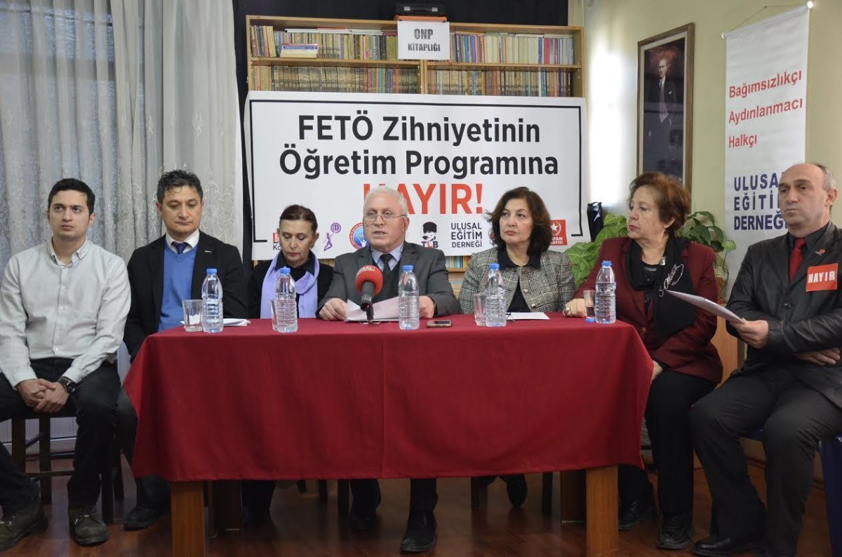 Bilim ve Ütopya Kooperatifi, Cumhuriyet Kadınları Derneği, Eğitim-İş Sendikası, Türkiye Gençlik Birliği, Türkiye Liseliler Birliği, Ulusal Strateji Merkezi, Ulusal Eğitim Derneği ve Vatan Partisi, ortak basın toplantısı düzenleyerek Milli Eğitim Bakanlığı’nın hazırladığı yeni müfredat taslağının FETÖ bağlantılarını açıkladı. Kurumlar, Milli Eğitim Bakanlığı’na taslağı geri çekin çağrısı yaptı.