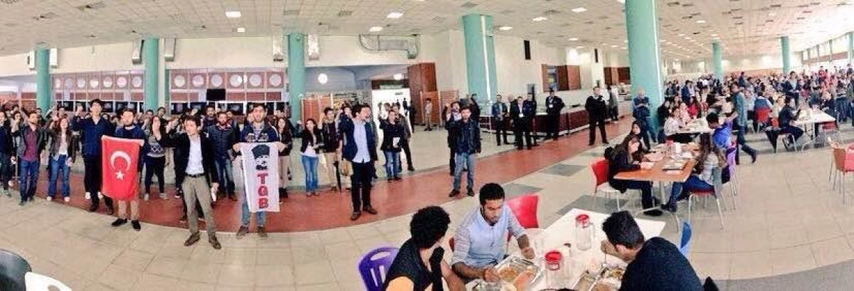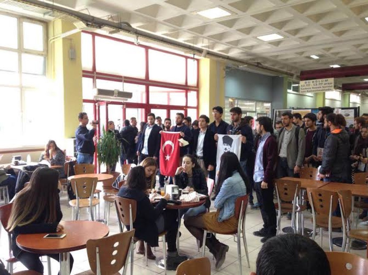 Açıklamanın ardından “Mecliste PKK istemiyoruz”, “Atatürk Gençliği görev başında” sloganları atıldı. Sloganlara katılan üniversite öğrencileri alkışlarıyla desteklerini gösterdiler.