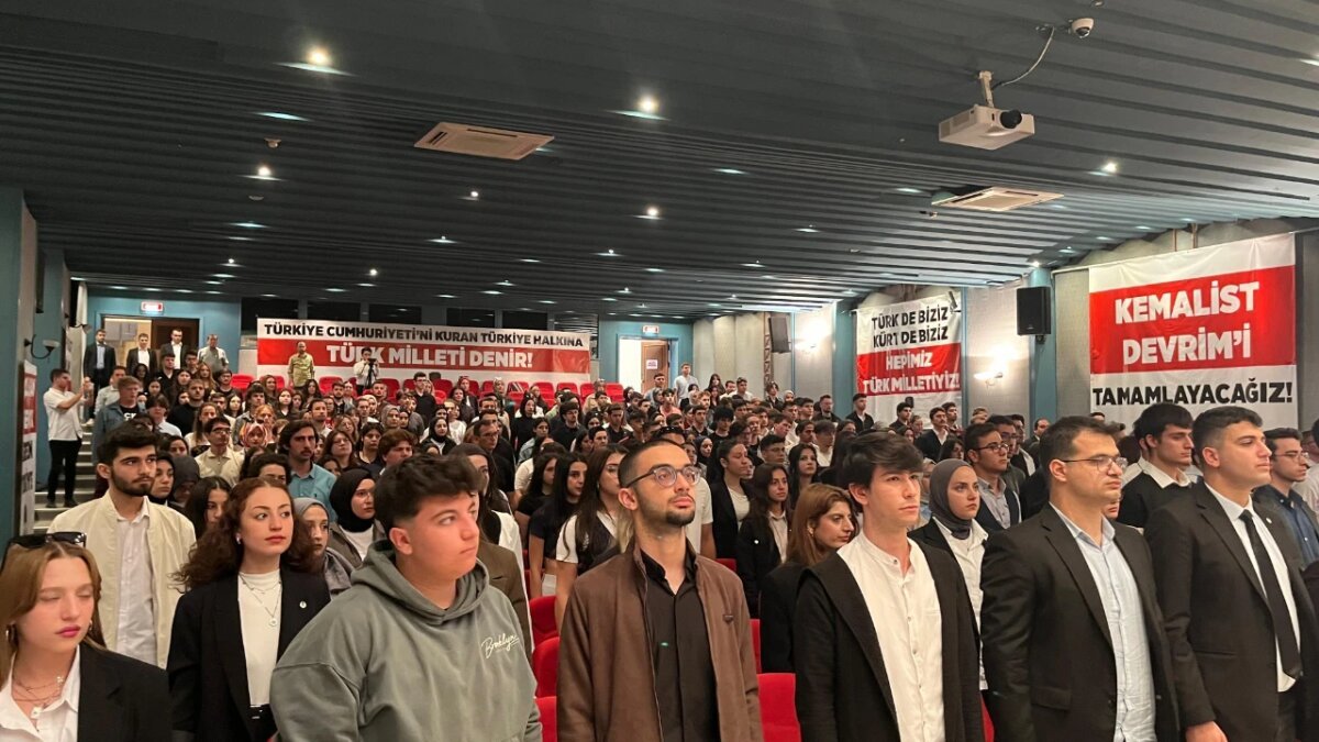 Gençlik Meclisi, saygı duruşu ve İstiklal Marşı ile başladı. İlk konuşan TGB Genel Başkan Yardımcısı Sueda Babacan, “Bugün burada Doğu Akdeniz’de namlularını ülkemize çevirerek Türkiye’yi parçalamak, yanı başımızda kukla bir Kürdistan kurmak, iç cephede Türkümüzü Kürdümüzü birbirine kırdırmak isteyenlere karşı irademizi ortaya koymak için geldik.” ifadelerini kullandı.