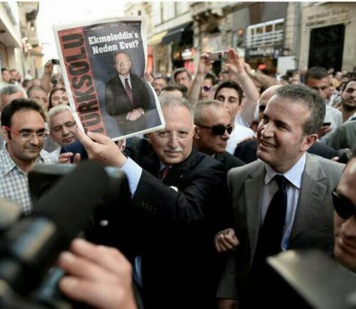 İhsanoğlu, seçim gezisi sırasında kapağında “Ekmeleddin’e neden evet” yazan Türk Solu dergisiyle fotoğraf çekildi.