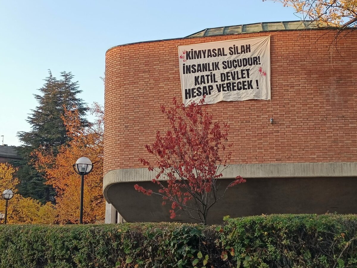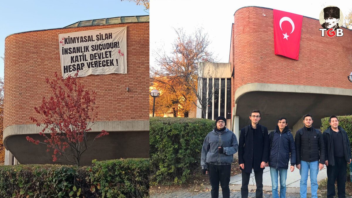 ODTÜ’de PKK sempatizanları TSK’ya atılan kimyasal silah yalanını “Katil Devlet” pankartını asarak devam ettirdiler. ODTÜ Türkiye Gençlik Birliği üyeler, pankartın yerine Türk bayrağı asarak yanıt verdi.